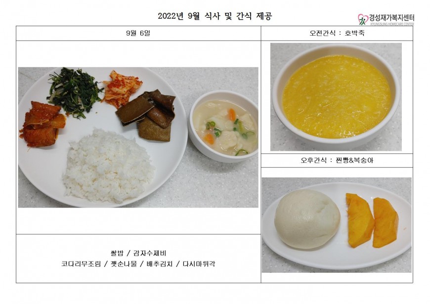 기관에서 직접 조리한 식사와 간식이 제공됩니다.