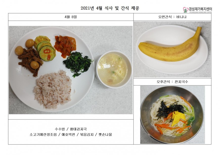 기관에서 직접 조리한 식사와 간식이 제공됩니다.
