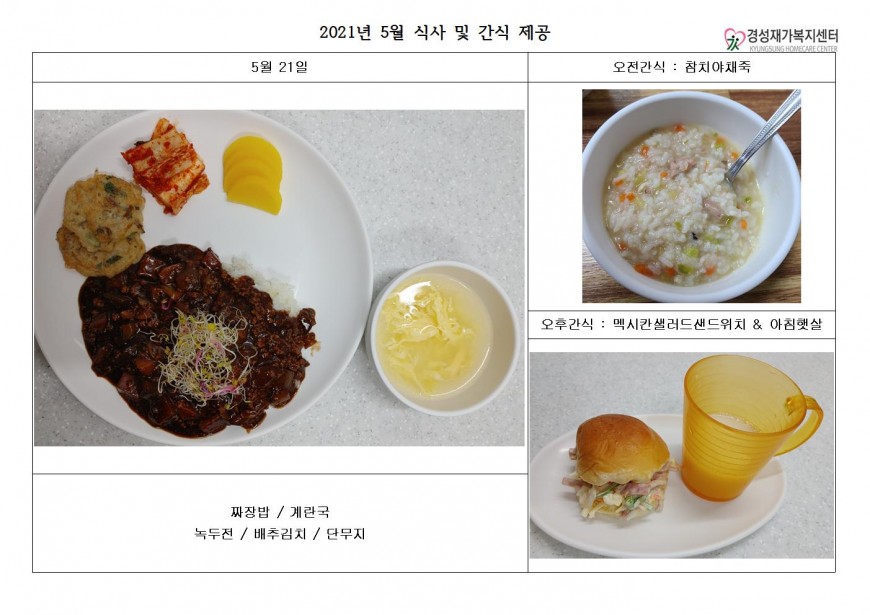 기관에서 직접 조리한 식사와 간식이 제공됩니다.