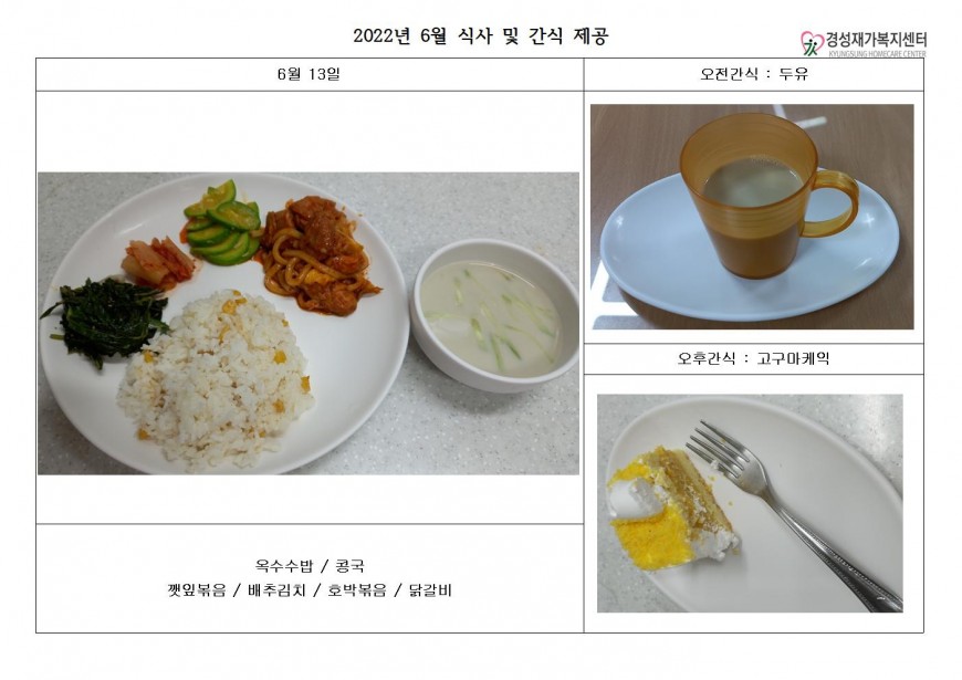 기관에서 직접 조리한 식사와 간식이 제공됩니다.