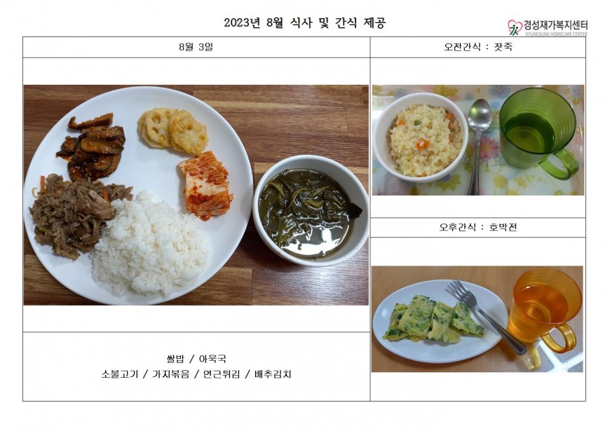 기관에서 직접 조리한 식사와 간식이 제공됩니다.