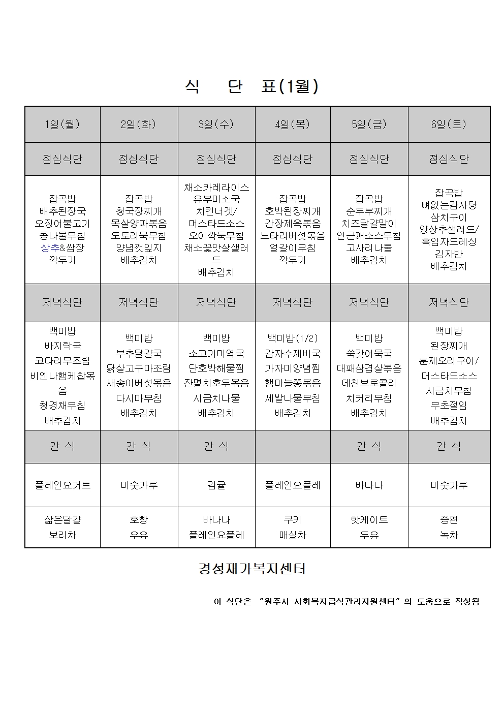 기관에서 직접 조리한 식사와 간식이 제공됩니다.